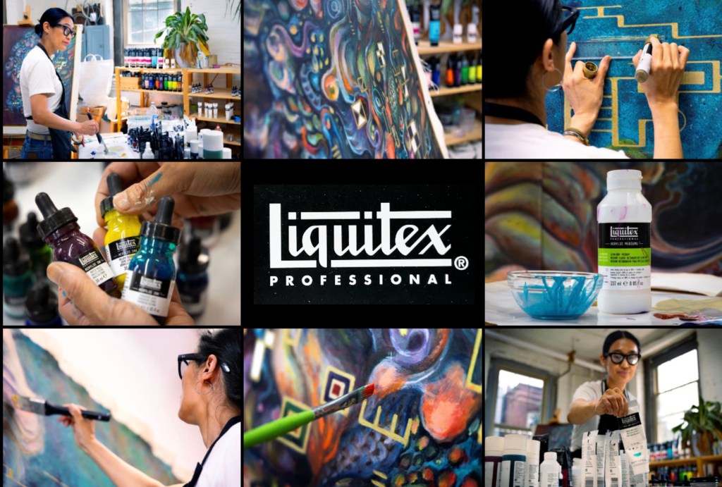 In the summer of 2024, Tomoko Takeda participated in the residency and produced a large-scale work measuring 225 × 62 inches through sustained experimentation with Liquitex products.